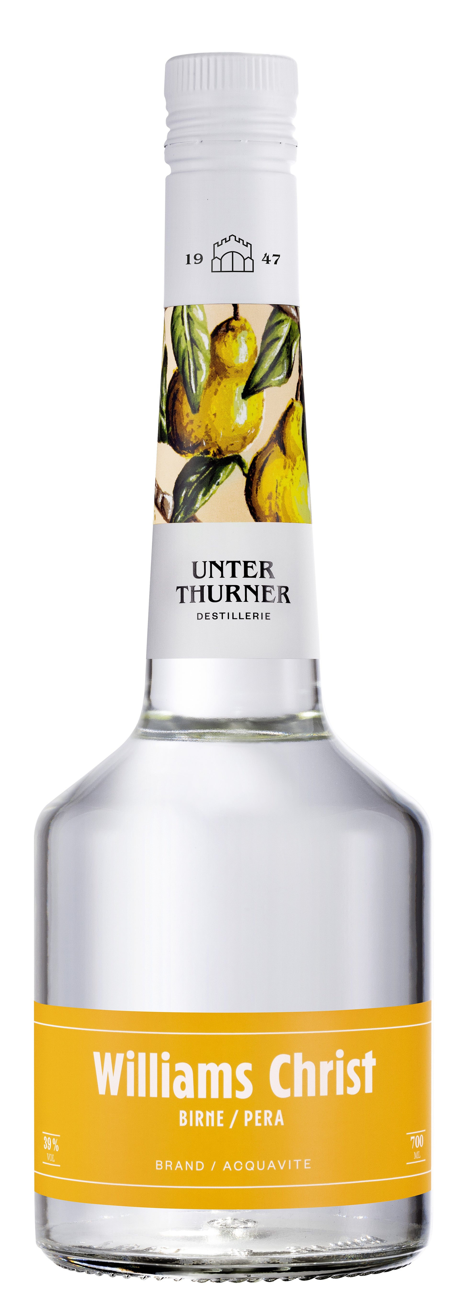 Der Unterthurner Williams Christ ist ein edler Brand aus italienischen Williamsbirnen. Entscheidend für seinen optimalen Geschmack ist die Qualität der Birnen, denn um einen ausdrucksstarken Brand zu destillieren, müssen die Früchte den idealen Reifegrad erreicht haben. Nur die gelben, reifen Birnen tragen ein intensives Aroma, welches in den Brand übergeht.